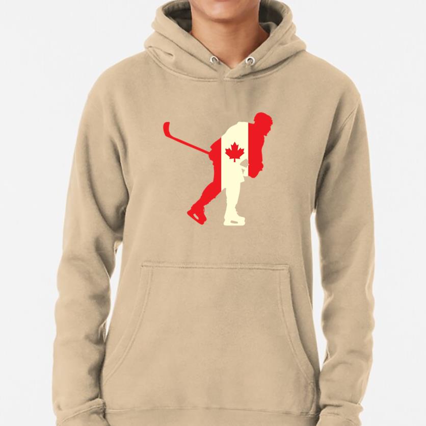 The Hockey Player On Canada Flag Flat Hoodie hoodie combines comfort warmth and style for a go anywhere piece that works in any season. Soft inside and durable outside it is perfect for layering or lounging