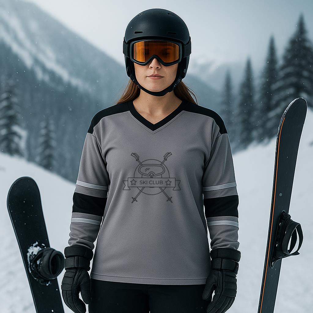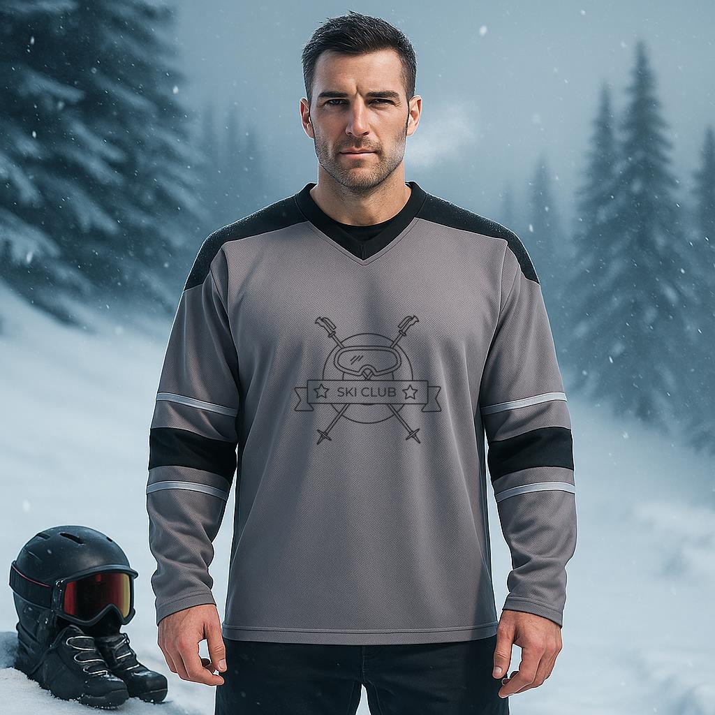 Glacier Edge is made for snow lovers and winter athletes. This high performance sports jersey is lightweight breathable and built for movement. The gray and black color block design with double arm stripes creates a strong bold look. Perfect for snowboarding skiing or layering during cold weather. Designed to keep you warm and comfortable without adding bulk.